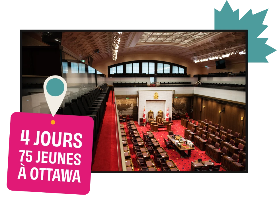 Provenant de partout au pays, 75 jeunes âgés de 16 à 20 ans se réuniront dans la Chambre du Sénat pour vivre le processus parlementaire de l’intérieur dans le cadre de cette expérience immersive de quatre jours.